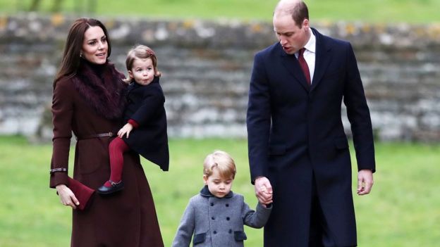 Супруги Кембриджские с детьми в декабре 2016 года у церкви Святого Марка в Энглфилде